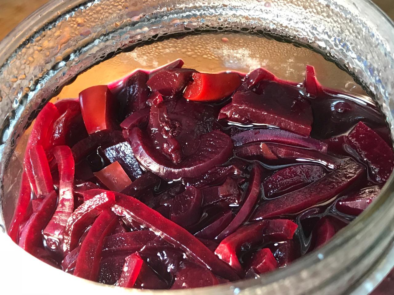 PICKLED BEETS fat-free You don’t have to go through the entire canning process to make pickled beets. Prep, cook, place in a jar and refrigerate to use as wanted. Here we add sweet onion strips and sweet red pepper. Then as we use the beets, we add other ingredients to the pickling jar, such asContinueContinue reading “PICKLED BEETS”